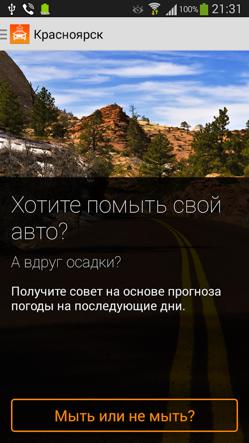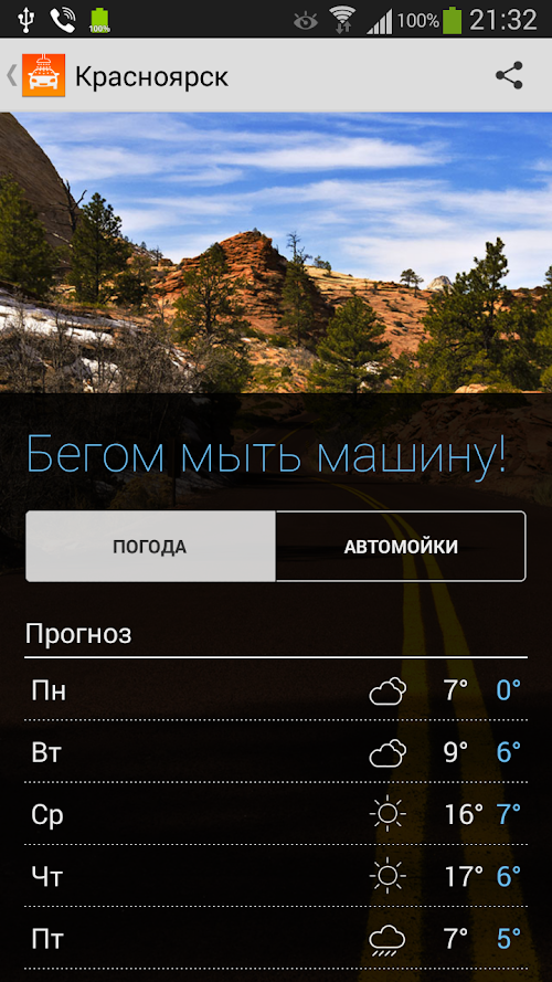 Приложение даст дельный совет, мыть Вам свой авто или отложить помывку и на сколько дней.