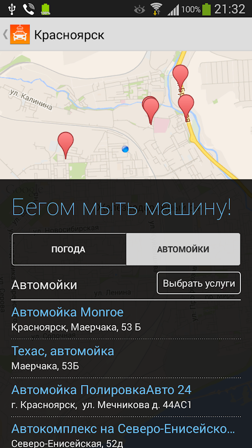 Приложение покажет ближайшие и самые популярные мойки.Want to wash your car? And suddenly the rain?