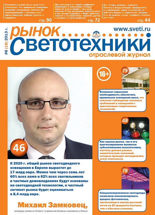 Журнал выходит один раз в два месяца объемом 100 страниц.Magazine "LIGHTING MARKET" - industry trade magazine.