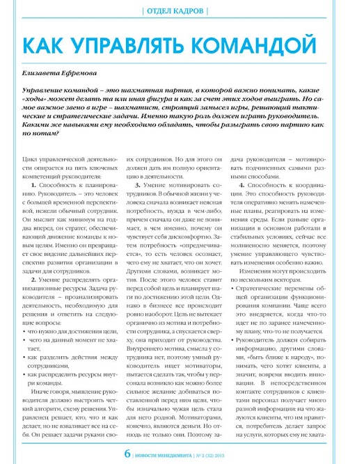 The magazine "News Management" is a line of publications for professionals in the publishing house "Image Media» www.image-media.ru