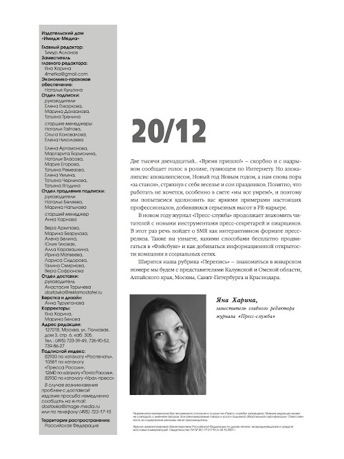 The magazine "Press Service" is a line of publications for professionals in the publishing house "Image Media» www.image-media.ru