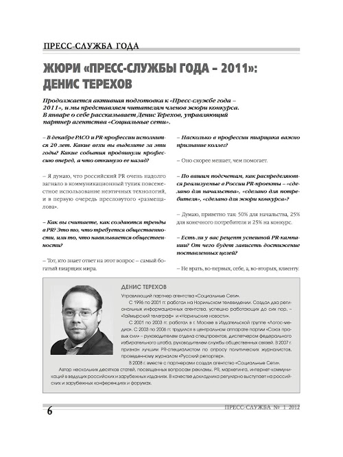 Всероссийский специализированный журнал для пресс-секретарей, руководителей и сотрудников пресс-служб и специалистов по связям с общественностью.