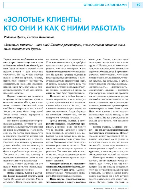 The magazine "Sales Management" is a line of publications for professionals in the publishing house "Image Media» www.image-media.ru