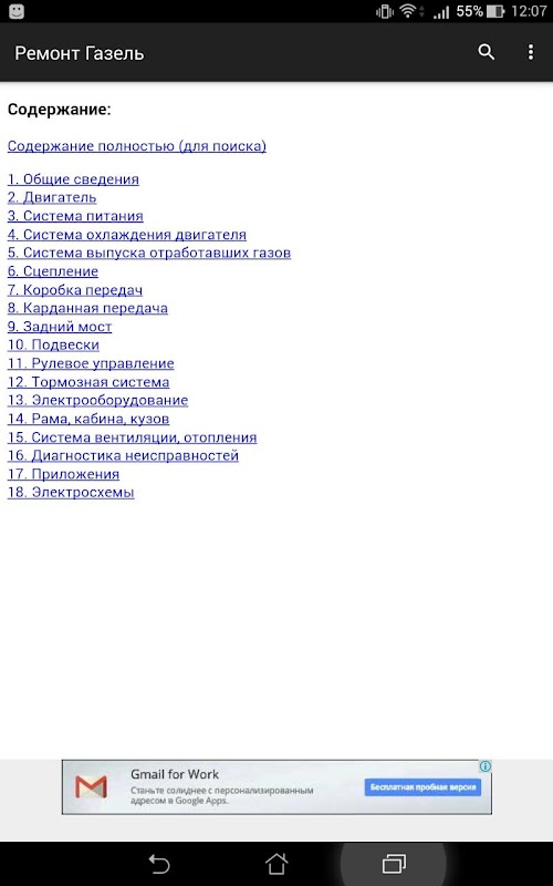 Мультимедийное руководство по ремонту автомобиля Газель от журнала "За рулем" адаптированное под андроид.