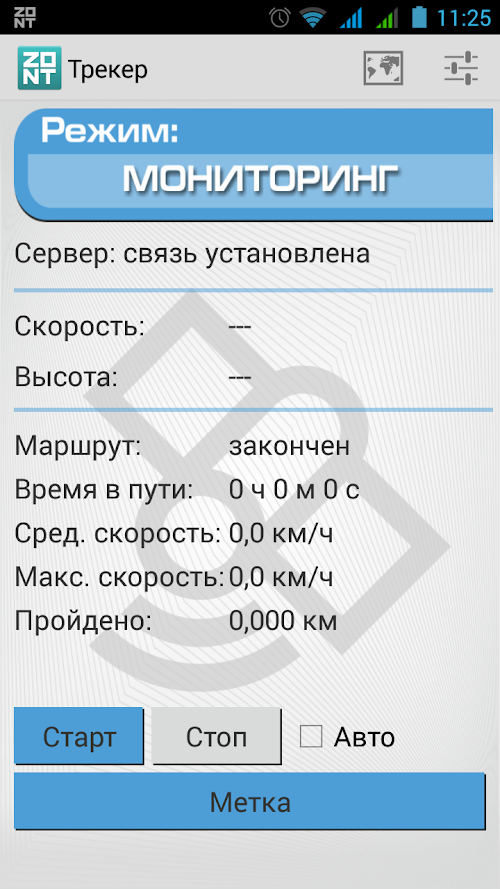 Режим Мониторинг для тех, кому нужна точная и актуальная информация о местонахождении: контроль торговых представителей и экспедиторов, наблюдение в реальном времени за тренировкой спортсменов и так далее.