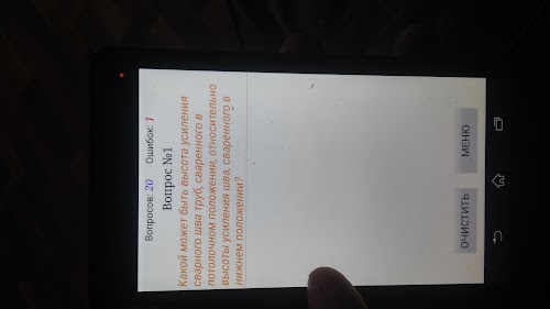 The application is designed for self-testing. Studied the theory of welding production, testing themselves on knowledge. When the test result is displayed: test or passed or not passed, the number of errors, number of questions, the question itself, in which mistakes were made. In the settings can determine for itself the number of errors in a percentage from 0 to 100, the number of questions from 1 to 152. The test is carried out at a time; from start to finish. You can not use the "Back" button and re-answer the previous question. At any time you can exit the menu, see the error and restart the test.