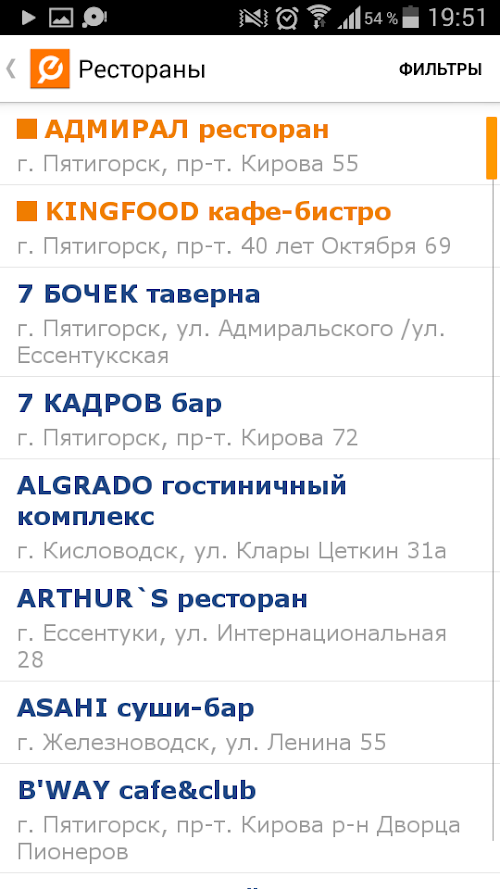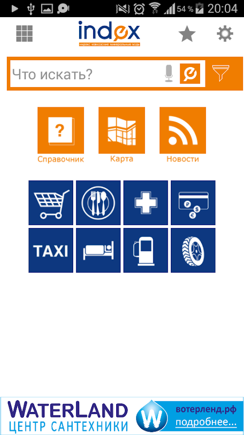 Easy to use address-telephone directory "index CMS" for smartphones allows you to quickly find and call the appropriate company, shop, salon. All information is similar to the version on the Internet site www. i-kmv.ru, updated at least once a mesyats.Uzhe in this version - the ability to view the latest news in Russia, Stavropol Territory and CMS. Search by company, shop by name, search for a product or service, and other services to help.