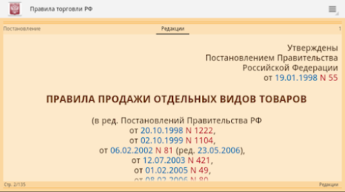 If you are looking to download other versions of Правила торговли РФ 2015 (бсп) Android App, We have 1 version in our database. Please select one of them below to download.