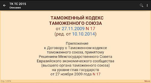 About Таможенный кодекс ТС 2015 (бс) Android App