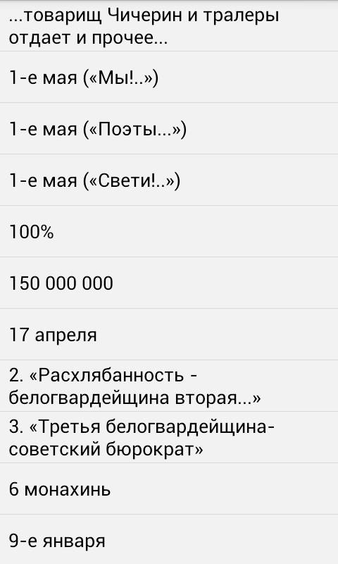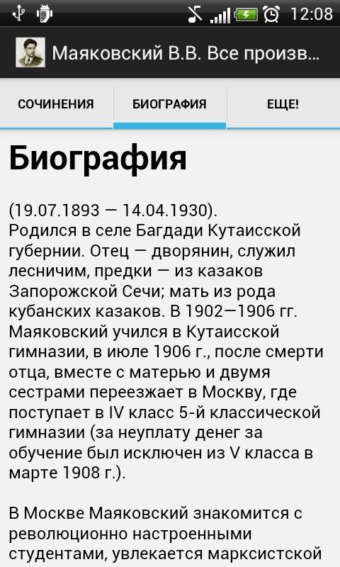 Все произведения Маяковского в одном приложении! Читайте русского классика через свой мобильный телефон! Приложение имеет удобный рубрикатор по названиям и жанрам произведений.All the works of Mayakovsky in one app! Read Russian classics through your mobile phone! The application has a handy Categories by title and genre works.