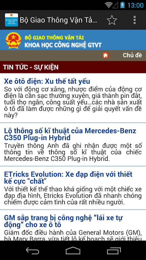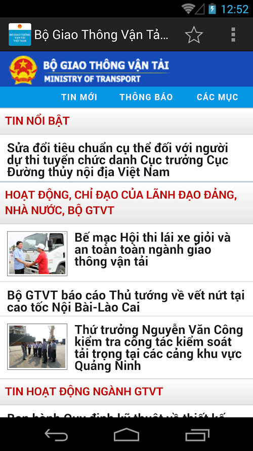 Giúp người dùng cập nhật tin tức mới của Bộ Giao thông vận tải.