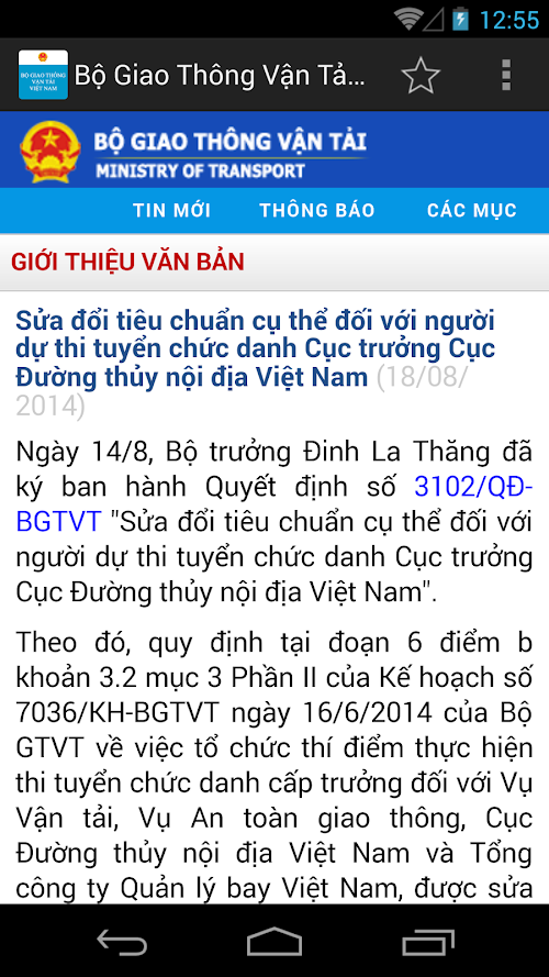 Help users updated news of Transport Ministry.