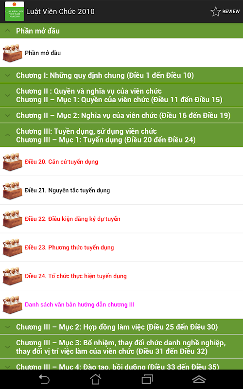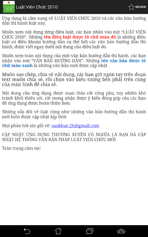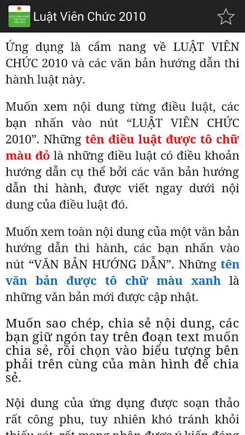 Ứng dụng là cẩm nang về Luật Viên Chức năm 2010 và các văn bản hướng dẫn thi hành luật này.