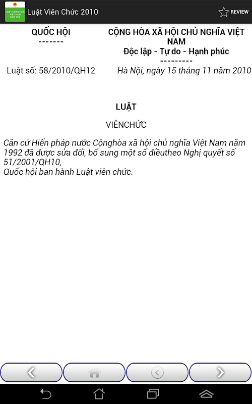 This version of Luật Viên Chức Việt Nam 2010 Android App comes with one universal variant which will work on all the Android devices.