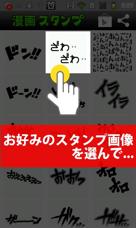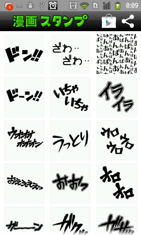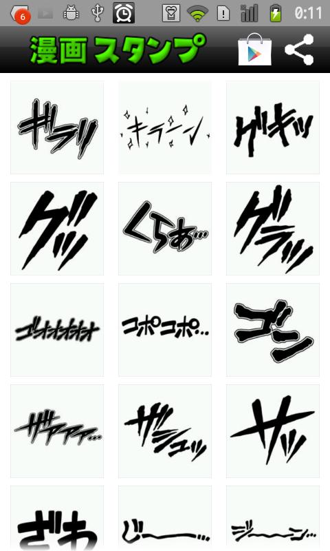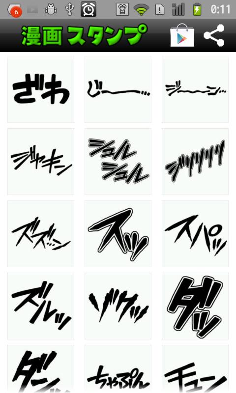 https://androider.jp/developer/c0008280987a880908853270107c12e9/ I collect more than 100 kinds of the onomatopoeic stamp something out of a comic.