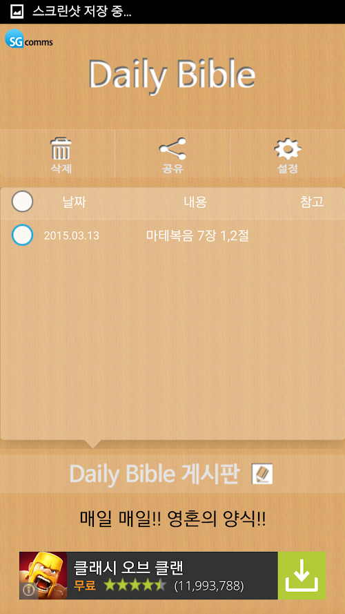걸 때 마다 하루에 한 개 이상의 말씀이 말씀이 노출됩니다.