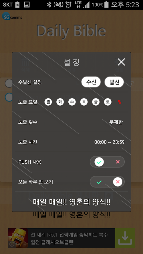 ★ 매일 말씀 읽기 : 앱을 실행 시키지 않아도 전화를 받거나