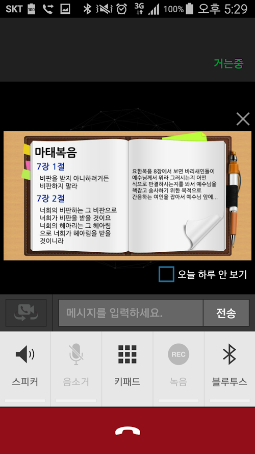 전화를 할 때 또는 전화 받을 때 마다 성경 말씀이 보여집니다.
