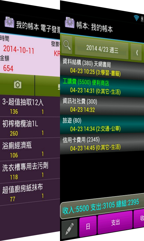 4. 不同顏色區分 支出/收入 細目, 帳目分類可自行維護增減