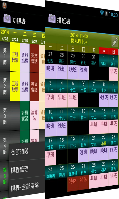 功課表/排班表
