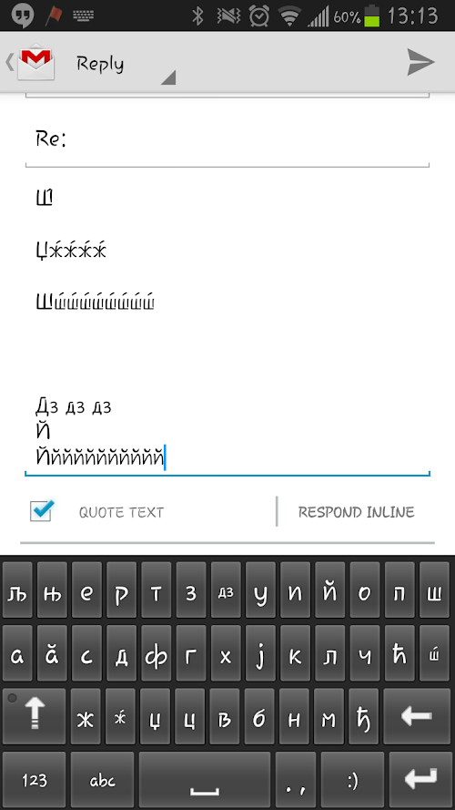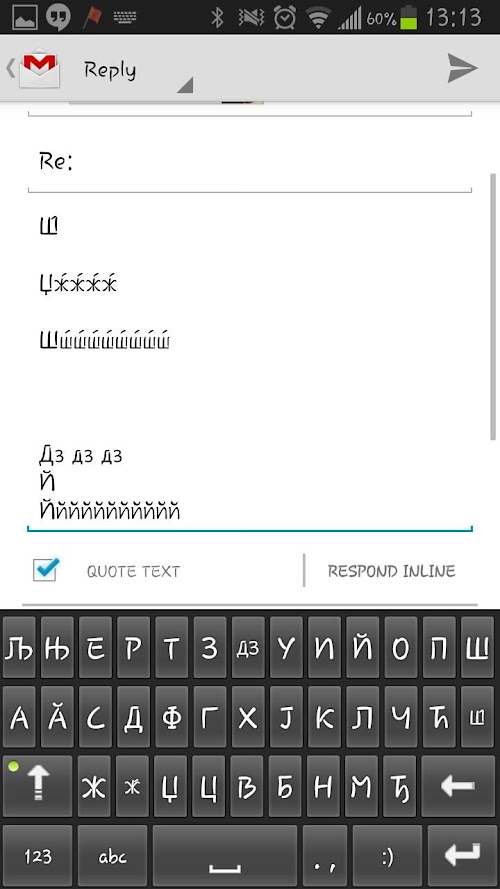 Ова тастатура Вам омогућава да, уз остало, куцате влашка и енглеска слова.This keyboard allows you to, among other things, typing Vlach and English letters.