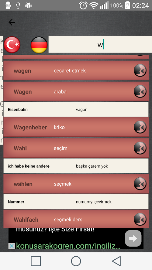 Bu uygulama kullanıcılara almanca-türkçe, türkçe-almanca çeviri sunmaktadır Kullanıcılarımız isterse online çalışma defteri, dergi ve kitap içeriği sunmaktadır .Belirli seviyelerde kelime ezberlemeye destek sağlayarak kullanıcıların kelime ezber çalışmalarını desteklemekte ve bunları raporlamasını sağlamaktadır.Online test imkanı sunarak kullanıcıları dahada geliştirmeyi hedeflemektedir.