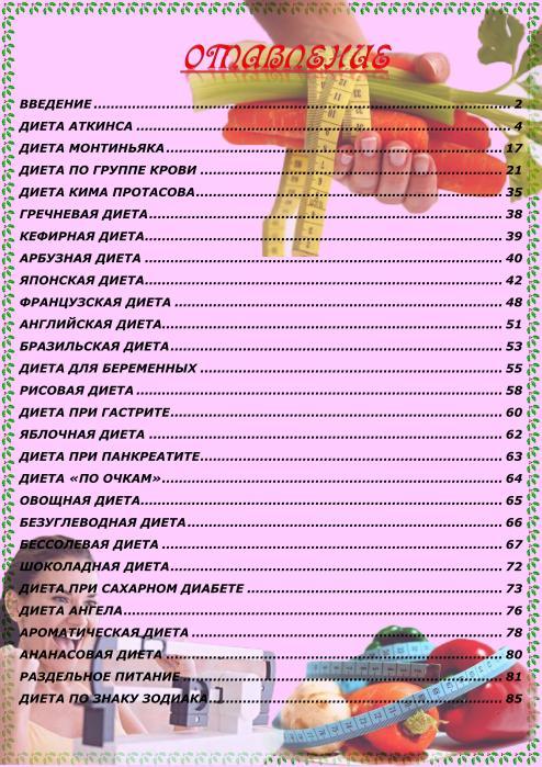 In the book, 95 pages of recipes and illustrated materials of a healthy diet.