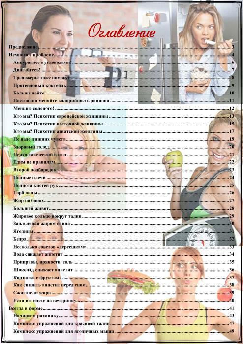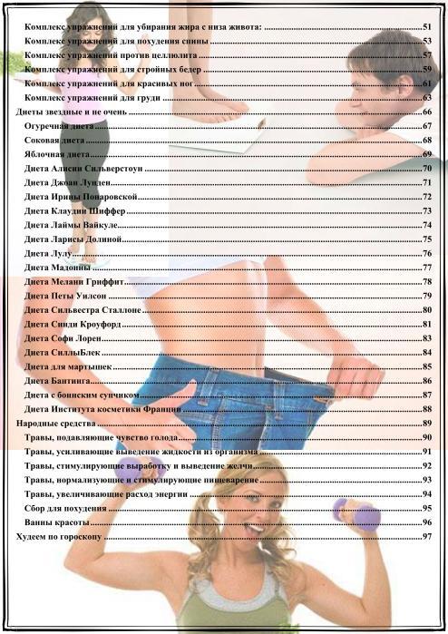 В книге 97 страниц рецептов и иллюстрированных материалов здоровых диет и упражнений.