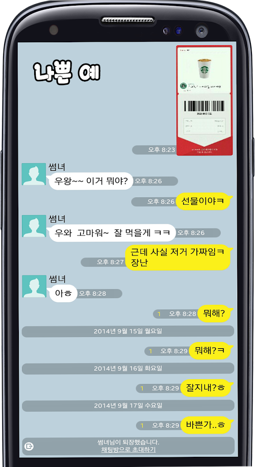*** 좋은 예, 나쁜 예를 한 번 보고 사용하세요. The application adds a lubricant, such as a friend relationship, or to value a playful lover, sseomnam sseomnyeo / awkward friend.