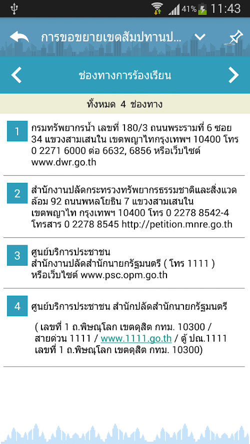 แอปพลิเคชันนี้ให้ข้อมูลต่างๆ เพื่ออำนวยความสะดวกแก่ประชาชนในการติดต่อราชการ โดยประชาชนสามารถ
