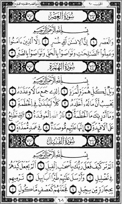 - الانتقال مباشرة للسور عن طريق الفهرس بالضغط على اسم السورة