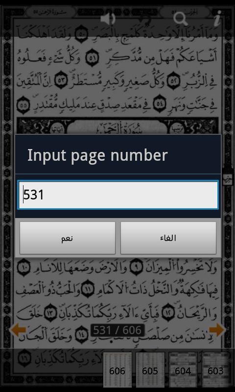 - الانتقال عن طريق الضغط على رقم الصفحة الظاهر ثم كتابة رقم الصفحة المراد الانتقال اليها