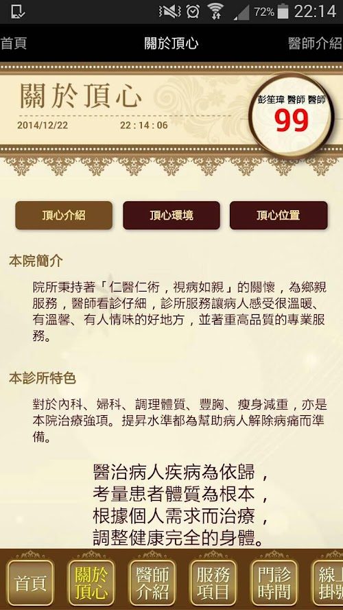 院所秉持著「仁醫仁術,視病如親」的關懷,為鄉親服務,醫師看診仔細,診所服務讓病人感受很溫暖、有溫馨、有人情味的好地方,並著重高品質的專業服務。