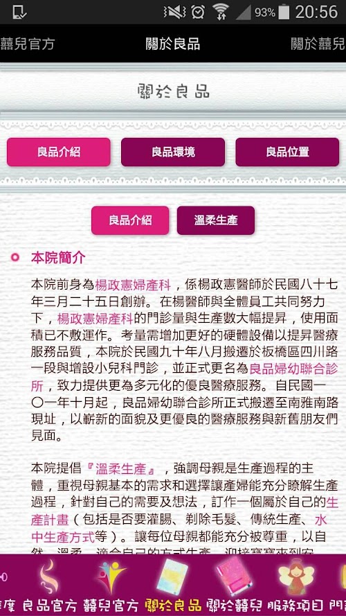 透過產前的協商、產時的溝通、產後的照護讓產婦與醫師之間有一個互相信任與和諧的夥伴關係,讓每個生命的誕生,都是獨一無二、極其美妙的經驗。 Masanori hospital formerly known as Yang Obstetrics and Gynecology, Department of Yang Masanori physicians on March 25 In 1992 founded seven years. In Young doctors and staff work together to produce the number of outpatient and obstetrics and gynecology Yang Masanori significantly improved operational use of the area has been inadequate. Consider the need to increase and better hardware equipment to improve the quality of medical services, the Court in the Republic of ninety August relocated in Itabashi Sichuan Road area with the addition of some pediatric clinics, and officially changed its name to yield combined maternal and child clinic, is committed to providing a more diverse of good medical care. Since October the Republic ten year yield combined maternal and child clinic officially moved to its present site Nanya Road, with a new look and better medical services and meet old and new friends.