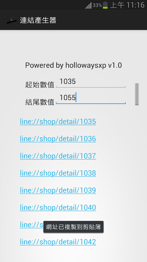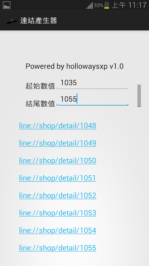 最後產生出來的網址在網址內編號後方一點的空白處,可以上下滑動以免滑動網址點到貼圖網址。 A site map to help you produce a small program number range from small to large