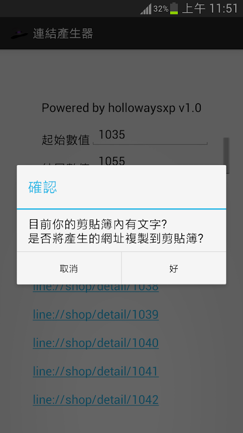 產生網址連結後也自動複製到剪貼簿,如果剪貼簿有內容問先詢問使用者是否將產生的連結複製到剪貼簿。