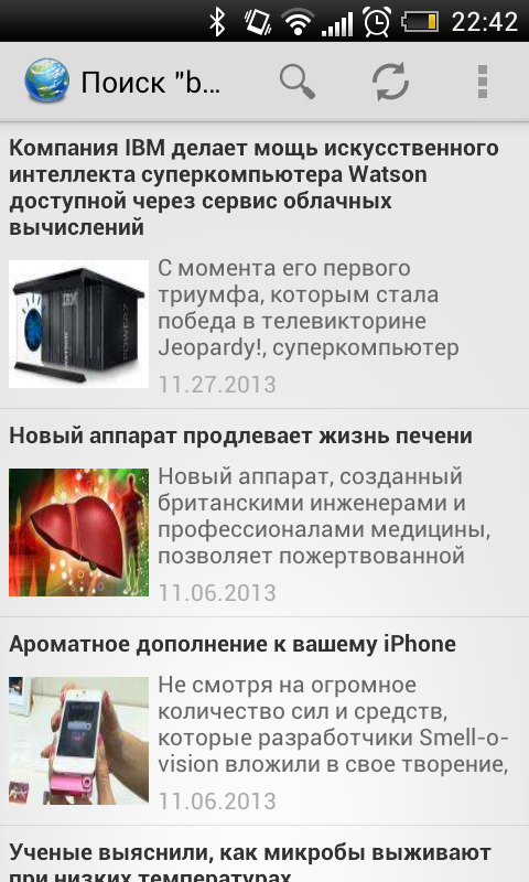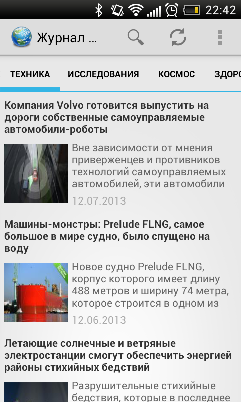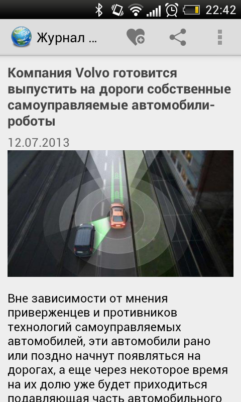 The application allows you to conveniently view a list of articles and if you want to open a detailed view article with minimal interface for ease of reading.