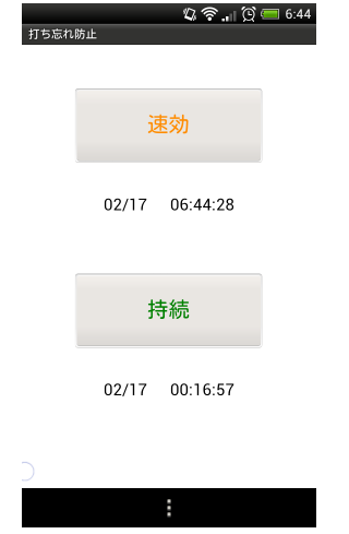 アプリを起動すると「速効」と「持続」のボタンが表示されます。