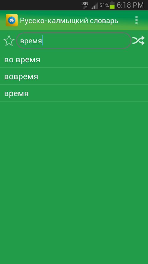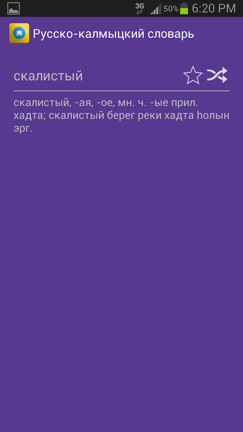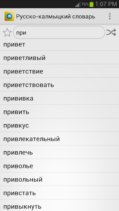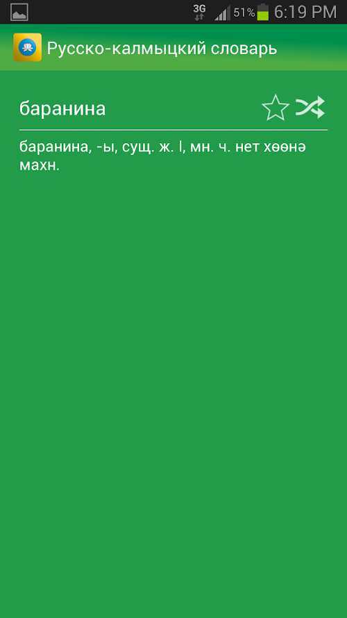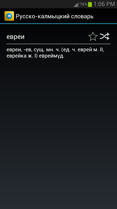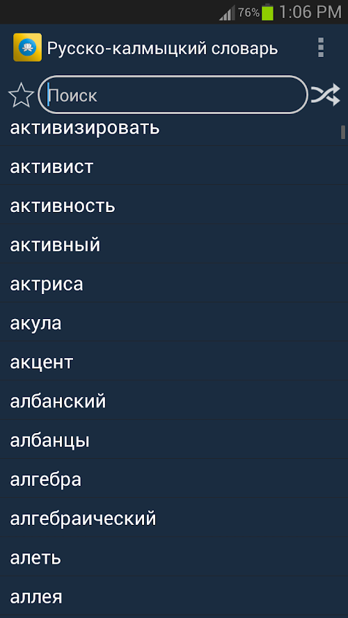 2. Random Word - learn Kalmyk words, each time you press the "shuffle" will appear random word.