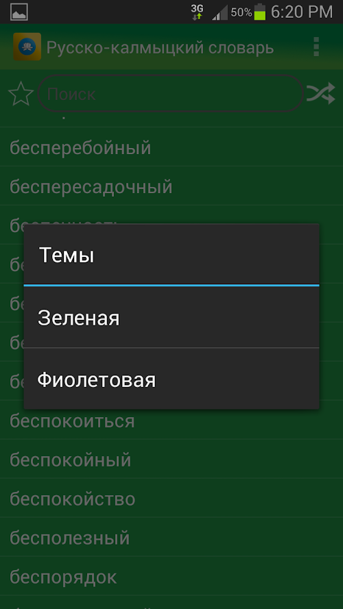 2. Случайное слово - учите калмыцкие слова, каждый раз при нажатии кнопки "шаффл", будет появляться случайное слово.