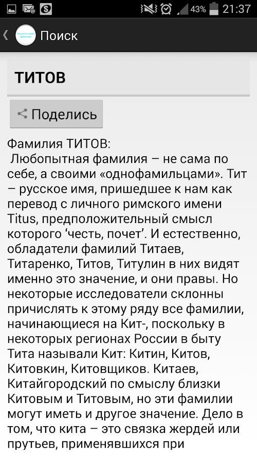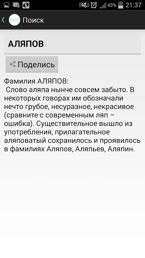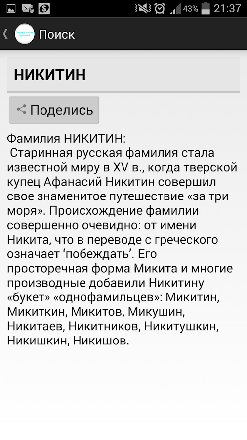 If you are looking to download other versions of Энциклопедия русских фамилий Android App, We have 1 version in our database. Please select one of them below to download.