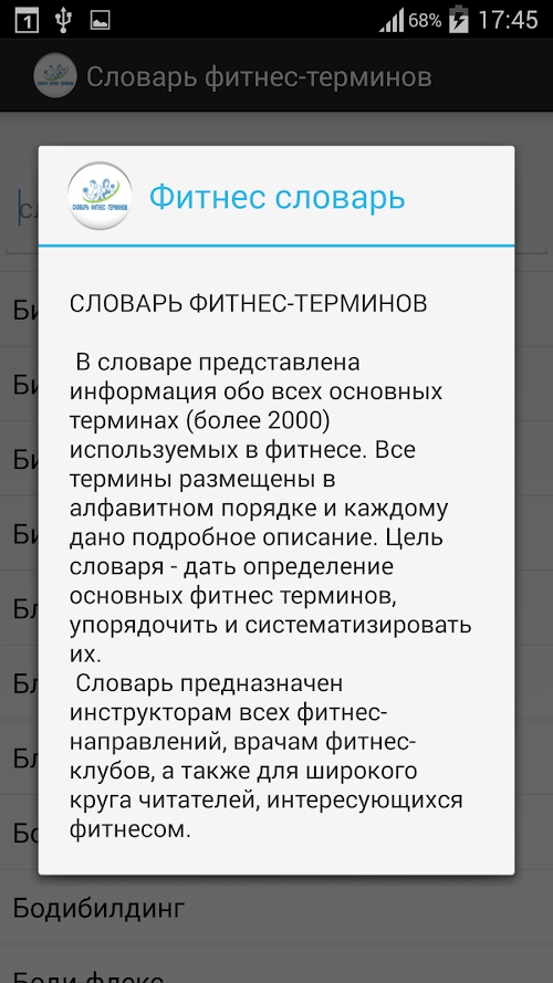 фитнес словарь, словарь для фитнеса, тренажераThe dictionary provides information about all the main terms (more than 2000) are used in fitness. All terms are arranged in alphabetical order and a detailed description of each. The aim of the dictionary - define basic fitness terms, streamline and systematize them.
