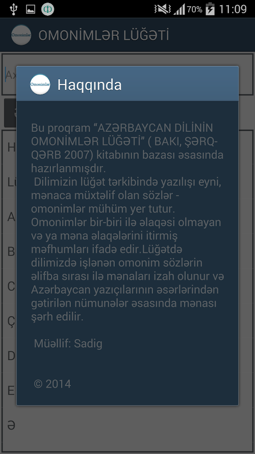 Bu proqram “AZƏRBAYCAN DİLİNİN OMONİMLƏR LÜĞƏTİ” ( BAKI, ŞƏRQ-QƏRB 2007) kitabının bazası əsasında hazırlanmışdır.