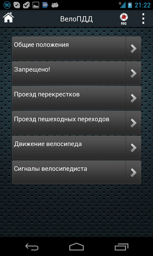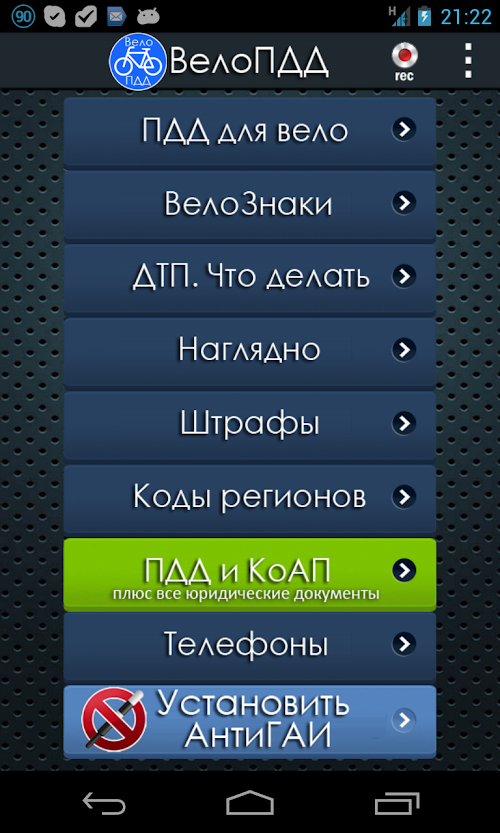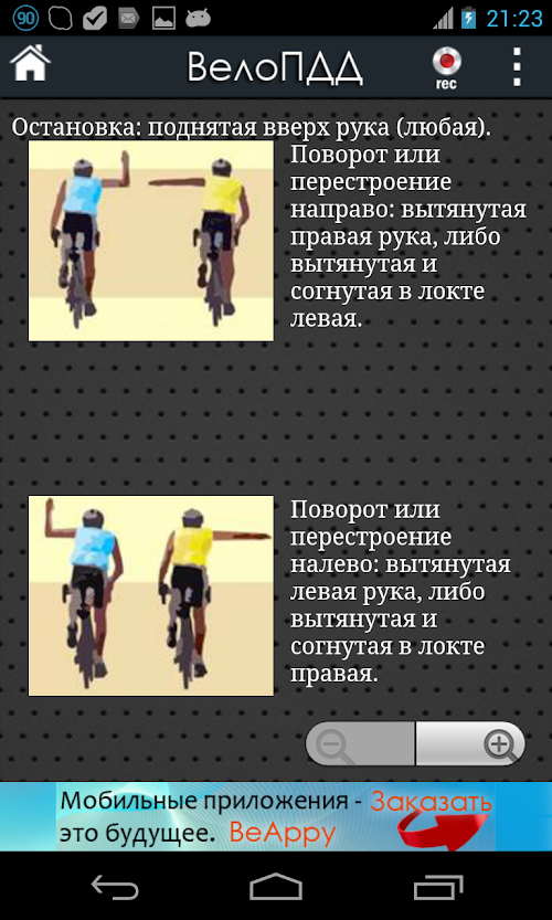 Приложение"Вело ПДД" составлено юристами и призвано ответить на все вопросы, касающиеся законодательного регулирования движения, прав, обязанностей и норм ответственности велосипедиста как участника дорожного движения."Velo SDA" - a handheld application that clearly and concisely describes all the legal aspects of the behavior of the cyclist on the road.