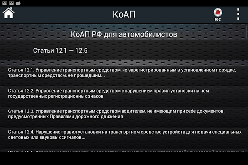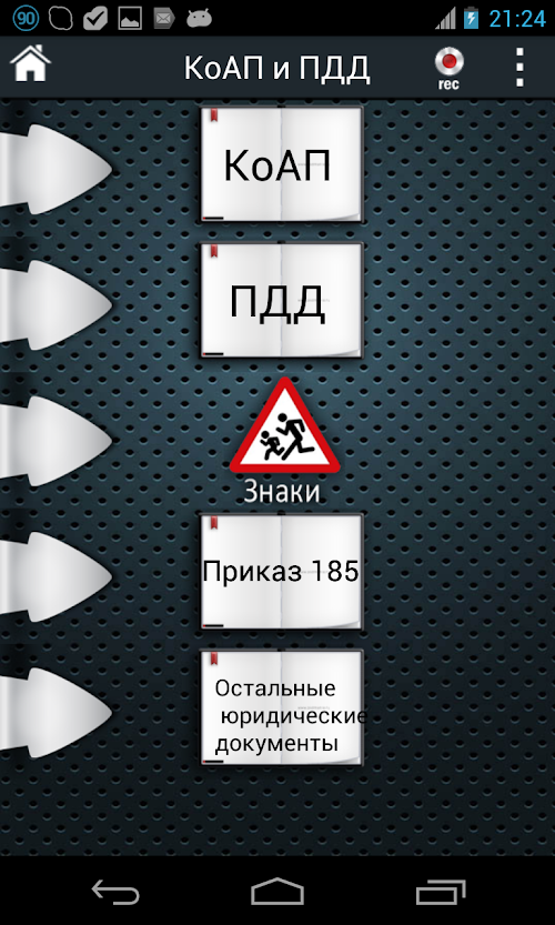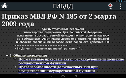 - Актуальные ПДД и все необходимые в дороге правовые документы (Приказ 185, КоАП...)