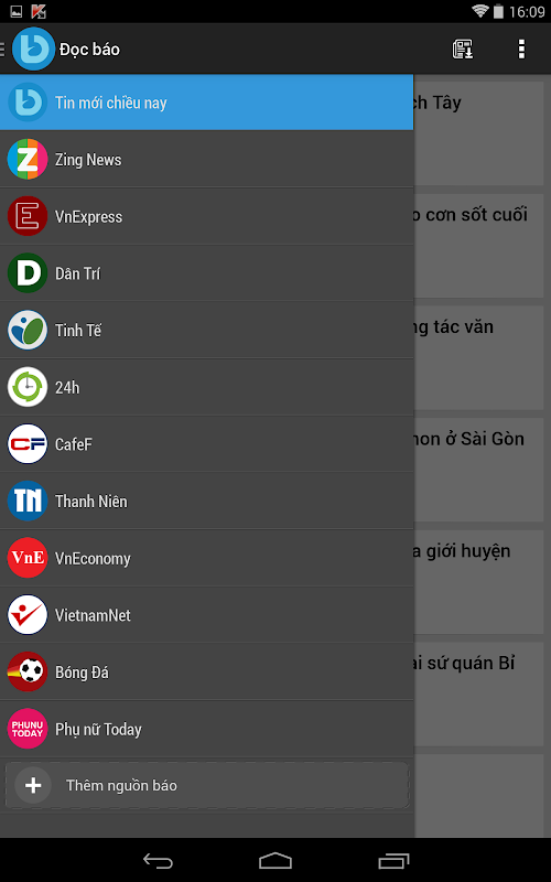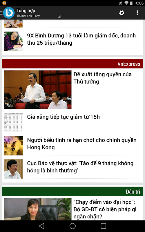 - A rich source of news aggregated from over 200 reputable electronic media: VnExpress, Reuters, Zing News, Vietnam Net, 24, Pioneer Online, Subtle, the People's Police, stars, afamily ...