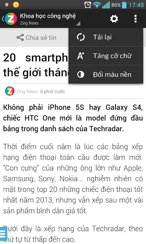 - Read the press easily share news on social networking sites like Zing Me, Facebook ...
