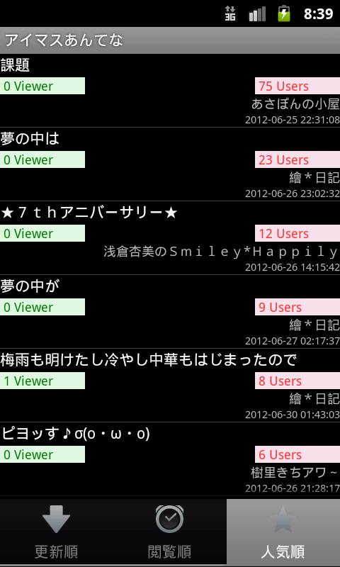 「新着順」と「閲覧順」と「人気順」でブログを閲覧することができます。