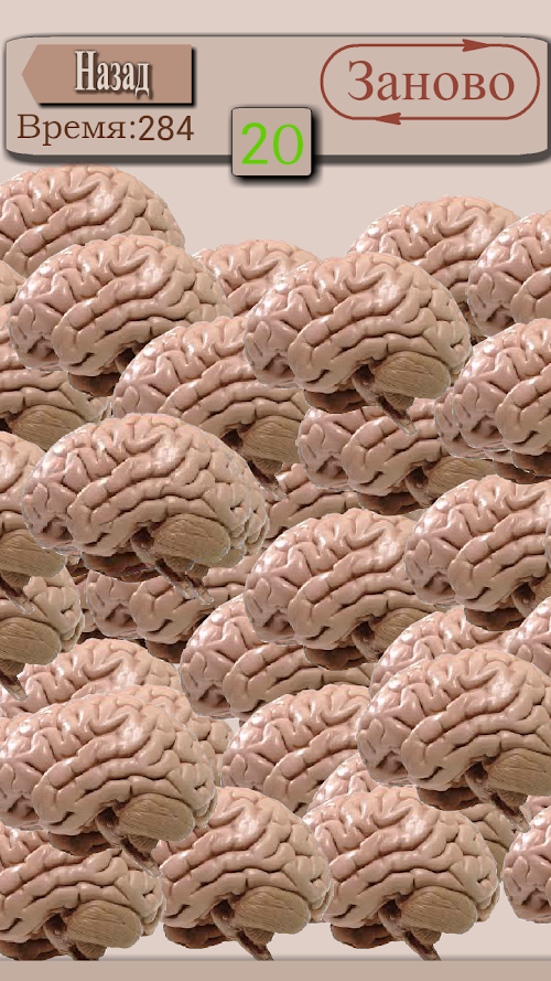 + The attentive brain - in this game, the screen will be filled with images of the brain, located in a random order. You will need to find the time with different brain convolutions. This game develops attention and speed of information perception.