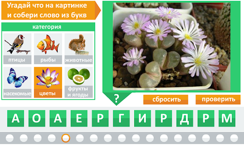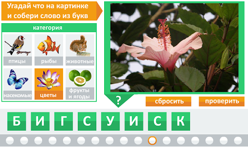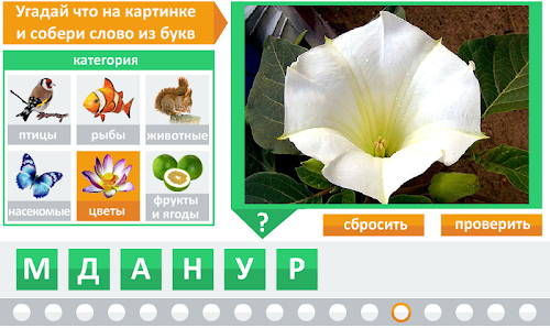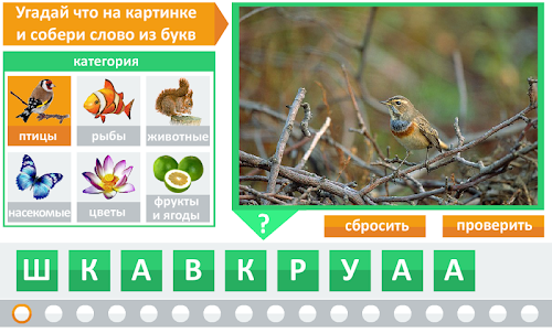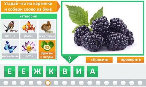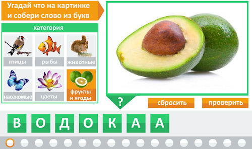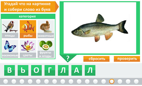 Игроку предстоит угадать, что изображено на картинке и восстановить слово перемещая буквы на нужные места.